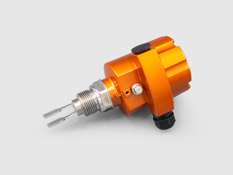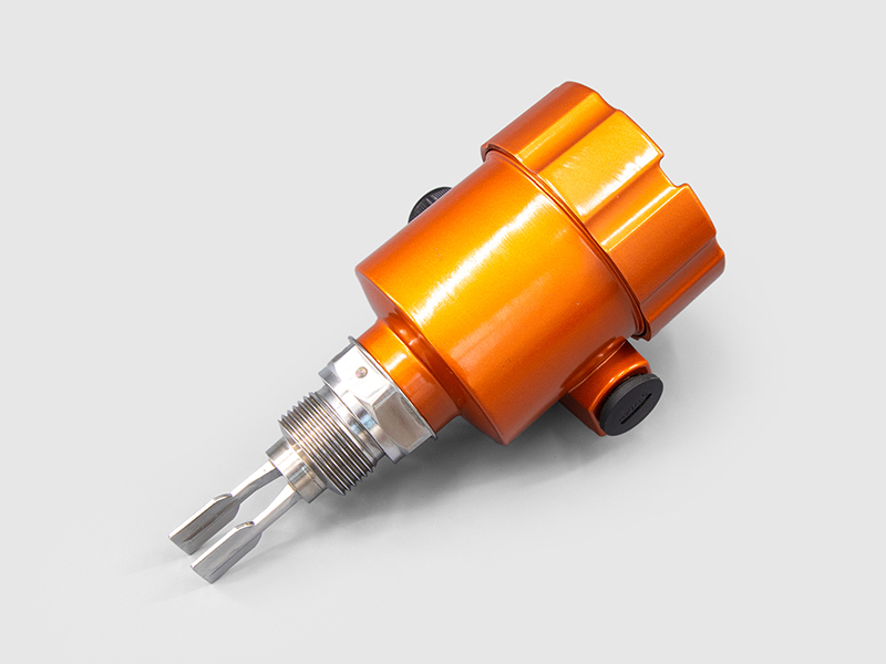 利用壓電晶體以及音叉的固有頻率對(duì)音叉棒進(jìn)行驅(qū)動(dòng)以及信號(hào)反饋,使音叉棒產(chǎn)生共振,當(dāng)有料位接觸音叉棒時(shí),使音叉棒反饋回來(lái)的頻率訊號(hào),當(dāng)電路偵測(cè)到此一訊號(hào)的頻率降低時(shí)轉(zhuǎn)換成一個(gè)接點(diǎn)訊號(hào)的輸出。
